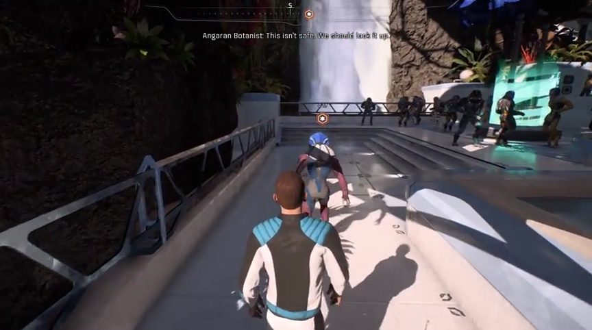While walking through the city of Aya, you have a bit of a chit chat with Paaran Shie. Apparently, this “Evfra” is not just some head honcho. He is the leader of the Resistance. This Resistance is what fight the Kett and protect them from being slaughtered, kidnapped, or kicked over. While going through the city, you can hear the Angara talking about you. Some even want to lock you up. SAM also picks up a bit of information about the Angara.