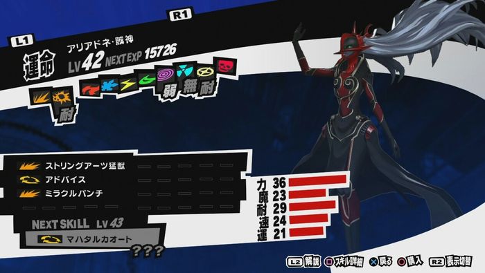 | Arcana | Level | Strength | Magic | Endurance | Agility | Luck |