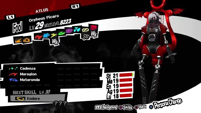 | Arcana | Base Level | Strength | Magic | Endurance | Agility | Luck |