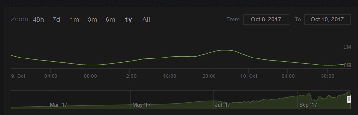 Brendan Greene’s Playerunknown’s Battlegrounds concurrent player numbers nearly reached the two million mark on October 9, 2017.