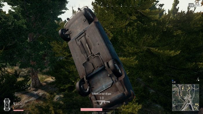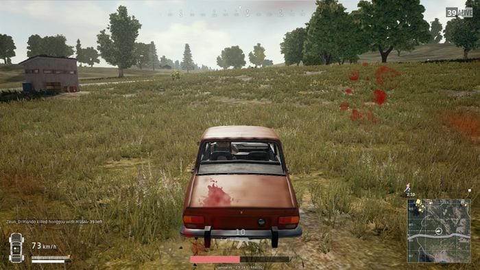 Like the impending chase of death in real life, the blue circle eats me up. Thankfully, I heard the rev of a distant car to my left. It veered to the right, ignorant of my car, pushing the car up towards the hillside. Not knowing if I could land a shot, I aimed with my M16A4 and landed my first kill of three for the day. I quickly ran towards the vehicle, looting the dead body along the way.