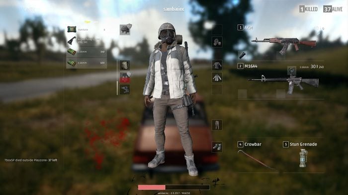 I started well this round. After landing in a pretty decent neighborhood and looting the buildings, I managed to procure an AKM and M16A4. After collecting other important equipment, I trekked towards the white circle, unaware that the electric field was so near to me.