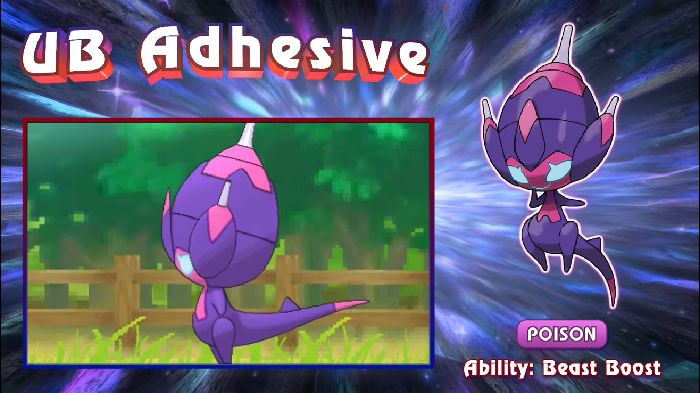 One of the highlights for the recent Pokemon Ultra Sun and Moon Official Trailer is the New Ultra Beast Adhesive. This Ultra Beast is the recent addition to the Rotom Dex following the reveals of previous trailers which showed Ultra Beast Burst, and Ultra Beast Lay. UB Adhesive is revealed to be a Poison type, sharing one Type with the Parasite Pokemon Nihilego.