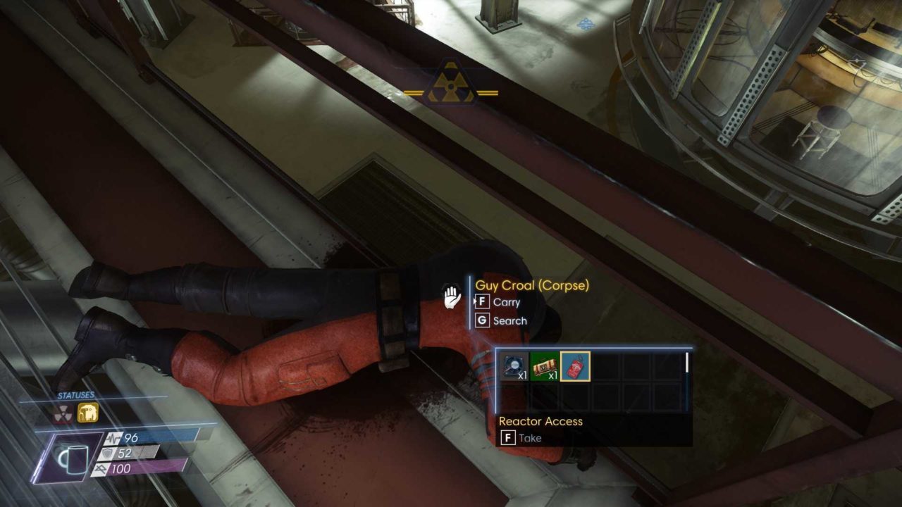 | Main Reactor Catwalk | The body of Guy Crool can be found here along with a Reactor Access keycard and a Gloo Cannon. |