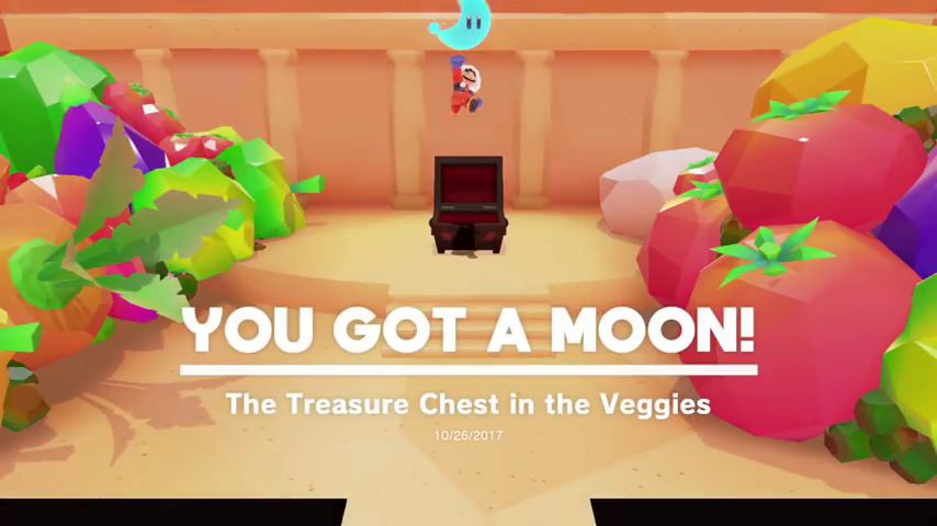 - Flanked by a cornucopia of veggies is a raised platform with a treasure chest, use Cappy to pry it open and collect the Power Moon.