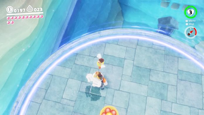 Counter with Mario’s Cappy to provide some cover while toppling his hat. Rinse for this process for the final time to finish him off.