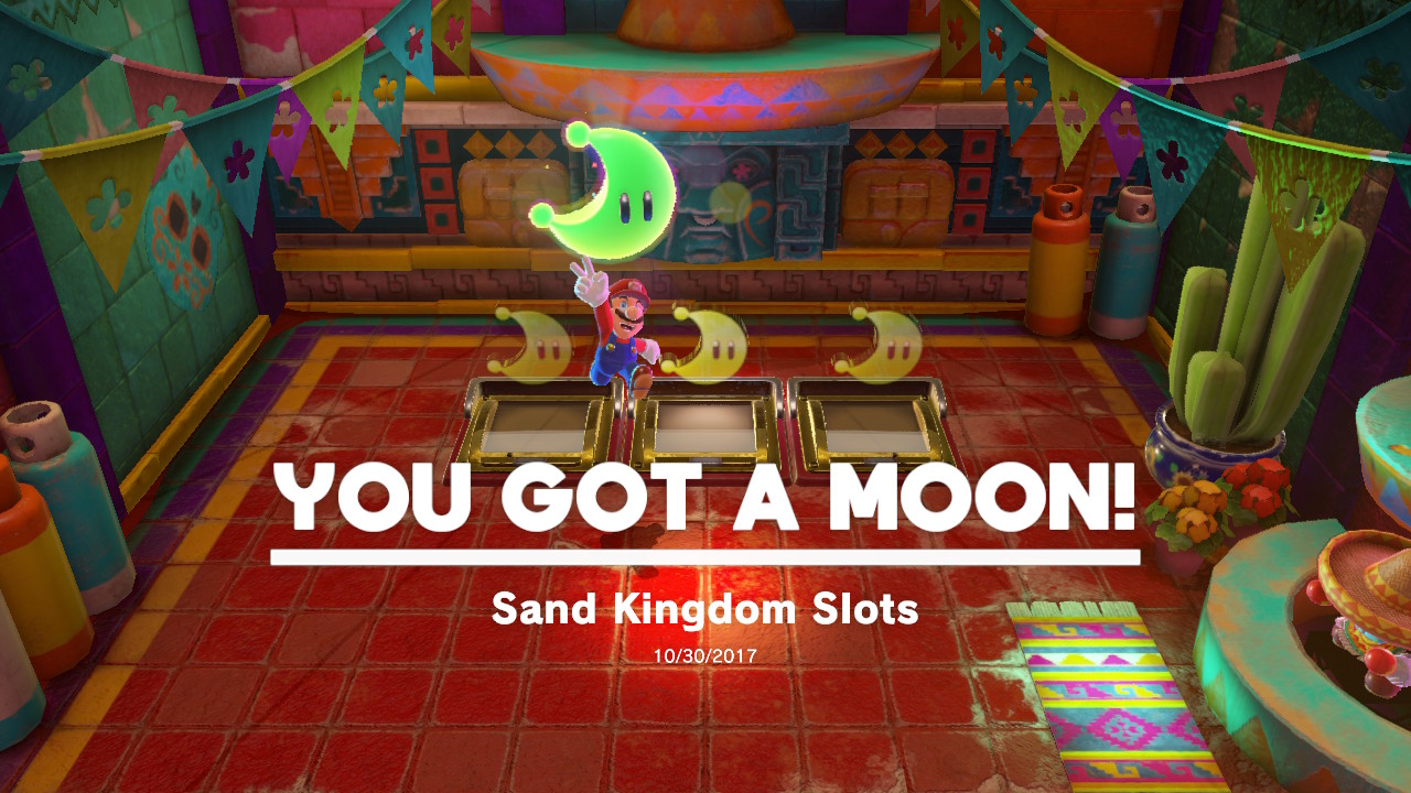 - Stand on the left side, then toss Cappy as soon as the Power Moons line up.
